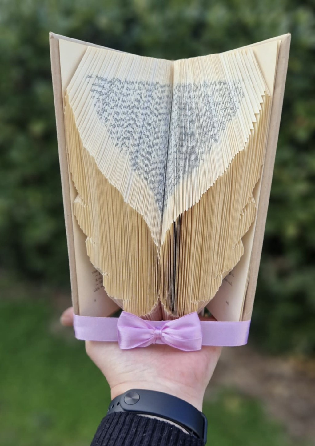 Adj új életet egy régi könyvnek! Könyvszobraim kidobásra szánt könyvekből készülnek, amelyeket gondosan, kézzel hajtogatva alakítok egyedi műalkotásokká. A vásárlók által megadott nevet, dátumot vagy egyedi szöveget formálom meg a könyv lapjaiból, így minden darab teljesen személyre szabható és egyedi.