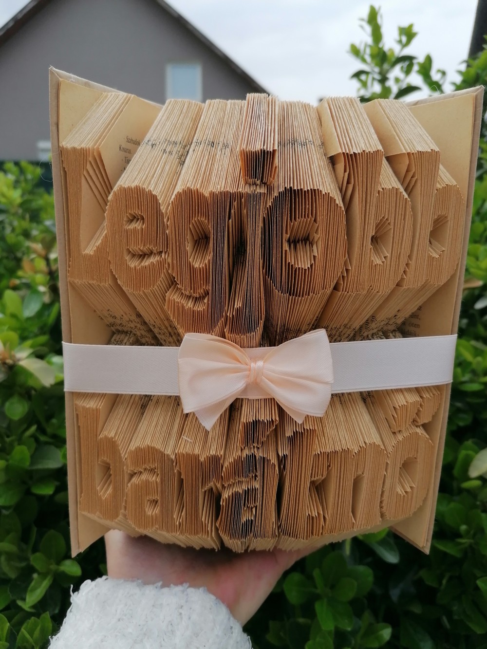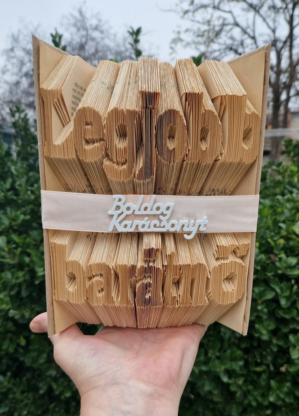Adj új életet egy régi könyvnek! Könyvszobraim kidobásra szánt könyvekből készülnek, amelyeket gondosan, kézzel hajtogatva alakítok egyedi műalkotásokká. A vásárlók által megadott nevet, dátumot vagy egyedi szöveget formálom meg a könyv lapjaiból, így minden darab teljesen személyre szabható és egyedi.
